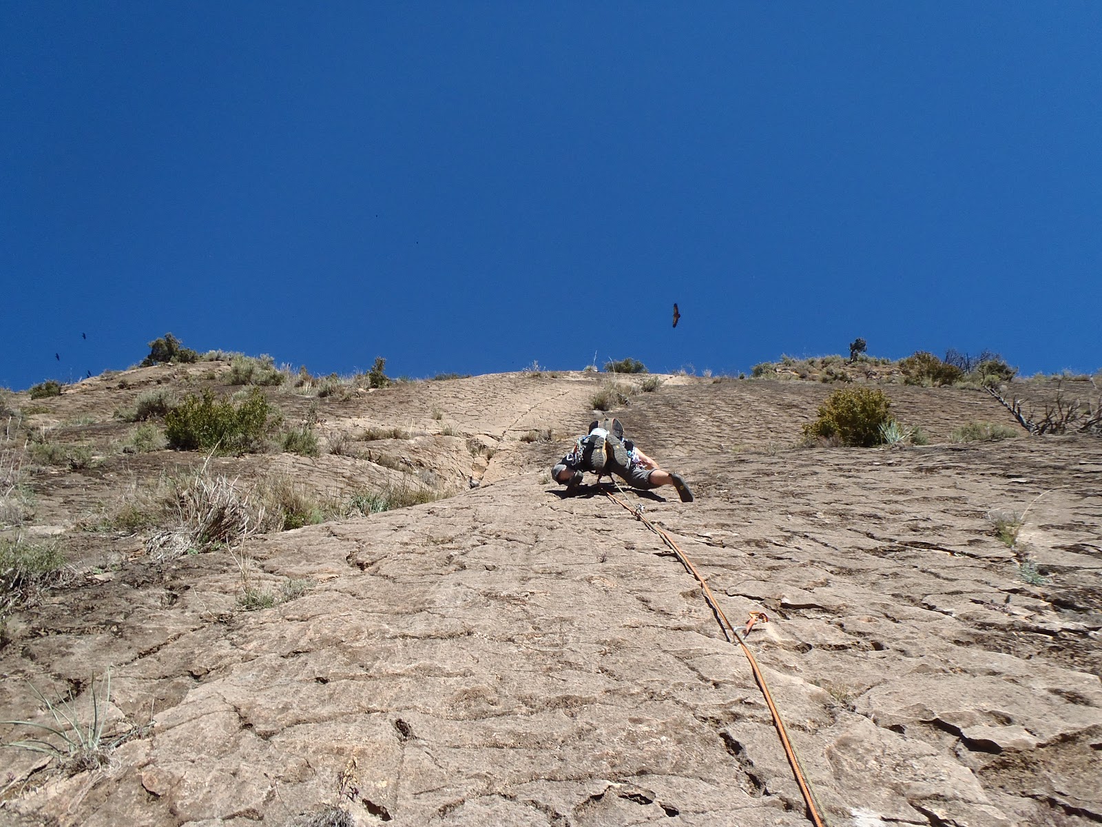 Seis rapeles siguiendo reseña con peligro de enganche de cuerda y volvemos al suelo.