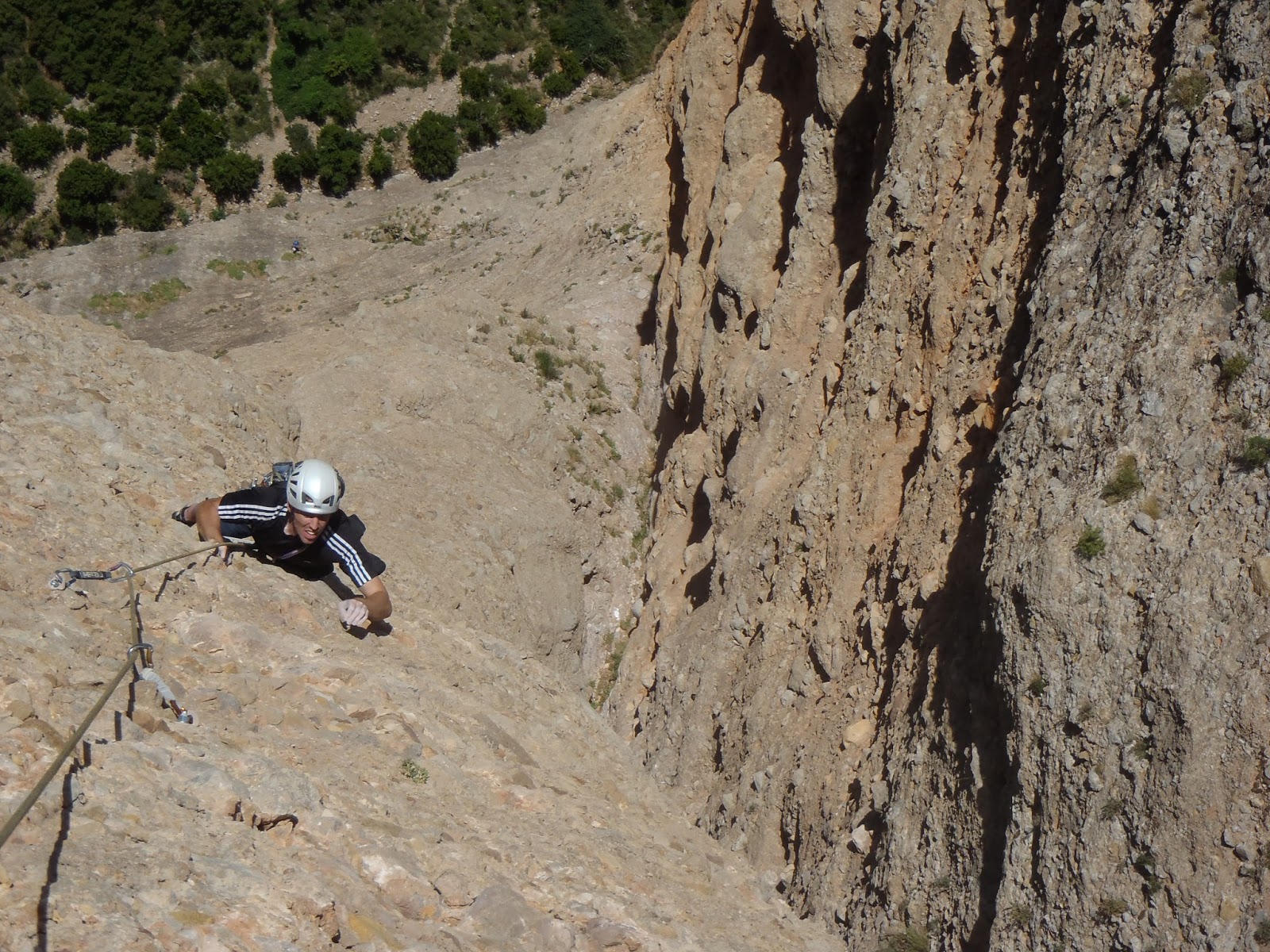 L5 (6a+) , 35 ms.:Aunque es uno de los largos mas fáciles , a mi me pareció uno de los mas bonitos y disfrutones de toda la via.No conviene relajarse porque también reserva alguna sorpresa. Muy largo , creo recordar que llego un punto que pensé que me había pasado la reunión.